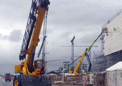 Contamos con una amplia flota de grúas y equipos de alta calidad y versatilidad, garantizando la realización de trabajos en altura de forma segura y eficiente. Nuestro personal altamente capacitado se encarga de la ejecución de maniobras precisas y complejas para el izaje y colocación de estructuras.